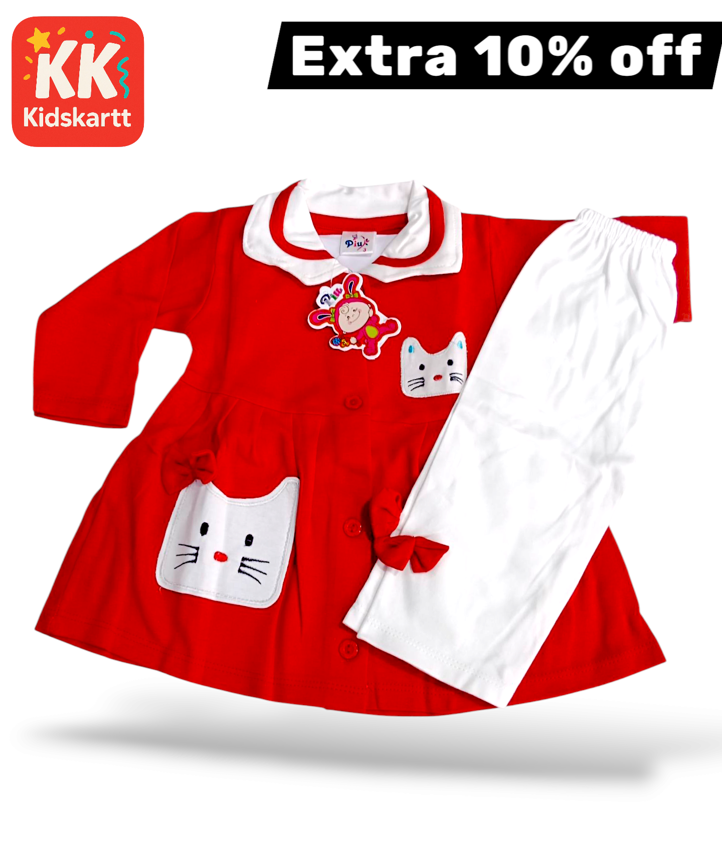 Red Whiskers Delight – 2-Piece Cotton Set for Girls quantity